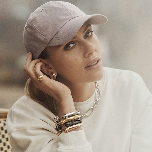 Casual High-Society Featuring in David Yurman's campaign, Scarlett Johanssen hones a casual high-society style, showcasing Yurman's iconic designs that can go from brunch to evening cocktail. Johanssen's image appeals to the professional women with a classic style who opts for versatility over statement pieces. | | Tropical Boho David Yurman's campaign featuring Shawn Mendes showcases casual mens' jewellery that can be layered to suit the younger male demographic who may prefer customising their own style. |