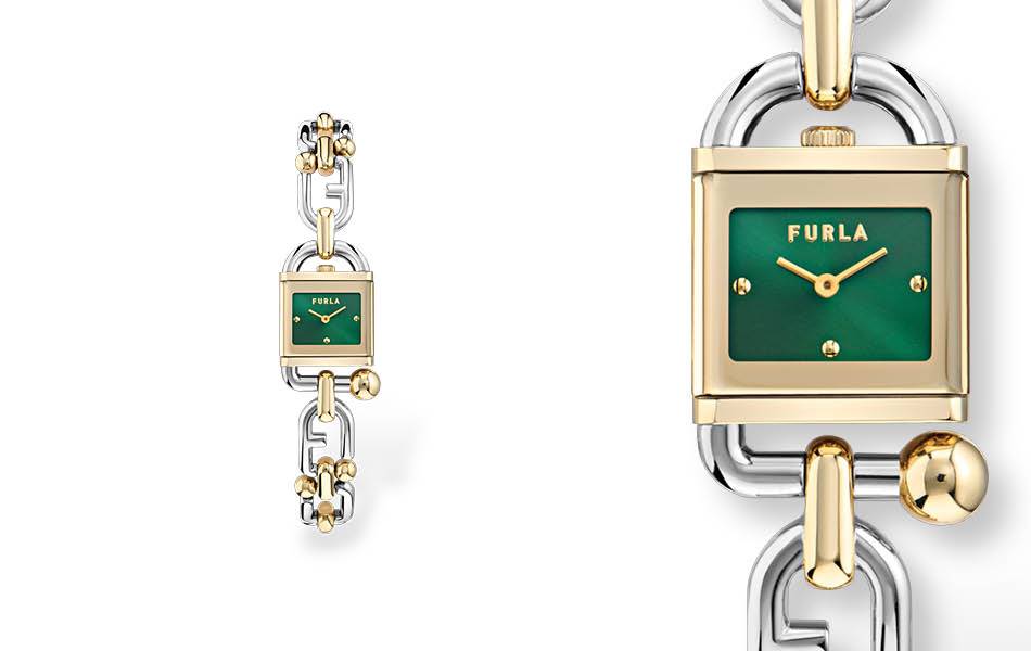 A square 20mm case frames a rich green sunray dial, bringing a vibrant pop of colour for contemporary luxury meets timeless elegance. More information: Designa Accessories VIEW SHOW & TELL