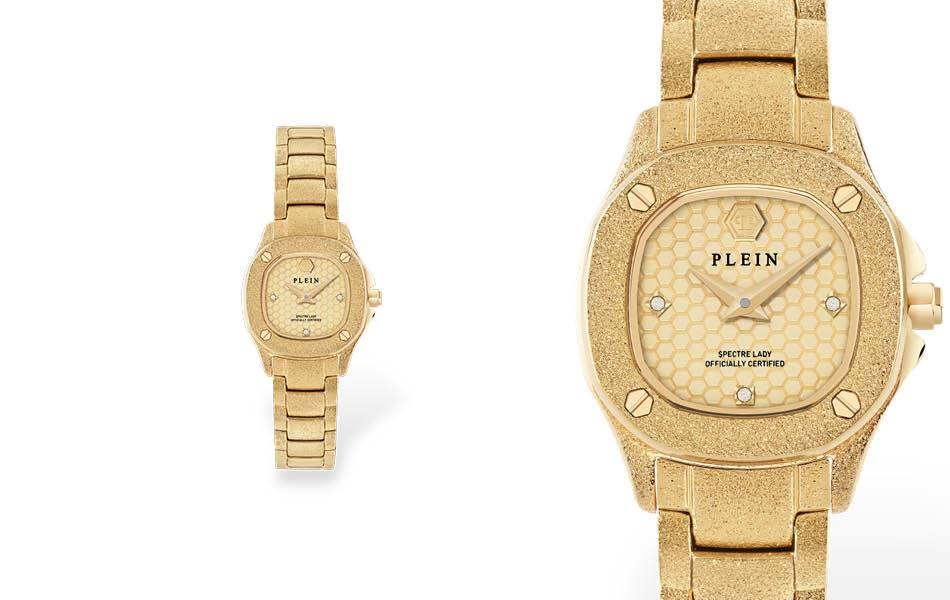 Its petite 23mm silhouette glistens with a frosted finish that whispers elegance but roars luxury. The gold-tone dial sparkles with crystals, making it a spotlight-stealer from every angle. More information: Designa Accessories VIEW SHOW & TELL
