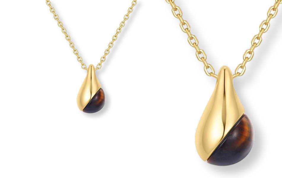 The bulbous, organic shapes of the tiger's eye pendant evoke a sense of warmth and stability, bringing a feeling of calm and grounded confidence. Whether worn alone or paired with other necklaces, it adds a touch of natural sophistication to any outfit.
