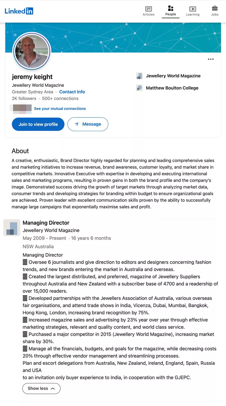 FOOTNOTE: A history of director-related activitiesJewellery World has a history of promoting and advertising companies owned by the magazine’s directors and staff. Industry Group Network, was the company that acquired Jewellery World from Jeremy Keight in July 2022; and was controlled by Jewellery Industry Network directors Laura Moore and Andy Phanthapangna. Keight had acquired the magazine in 2015 from Intermedia Group, having previously been the publisher of Jewellers Trade. Shortly after acquiring Jewellery World, Keight announced that he would close the publication, marking the end of 34 years of publication. Confusingly, around one month later, Keight appeared to have a change of heart and instead elected to close Jewellers Trade. The following year, it was discovered that Keight was using the publication to promote a number of jewellery businesses that he and the magazine’s editor, Jo Thompson, owned. Some of the advertising for these companies competed with the magazine’s advertisers and other industry suppliers. For example, at the time Colour My Diamonds was one of the Keight-owned businesses advertised in his own magazine sold loose diamonds. Around the same time, Keight found himself embroiled in legal proceedings regarding false and untrue statements published in Jewellery World in an article about the launch of a trade show by the Jewellers Association of Australia (JAA). Keight settled the case out of court and later issued a formal apology, retracting the unfounded allegations. He is believed to have provided financial ‘compensation’ as part of the settlement, too. As documented above, similar legal issues resurfaced in 2023 when the Jewellery Industry Network was taken to court for misleading material published in a May 2022 brochure that advertised the Jewellery Industry Fair. As reported, Moore and Phanthapangna settled the case out of court. Finally, while Keight sold the publication to Moore and Phanthapangna in 2022, he is still confusingly promoting himself on LinkedIn three years later as the managing director of Jewellery World. However, the most recent issue of the magazine (October 2025) lists Keight’s contact information under ‘advertising enquiries’, not as managing director. Keight’s LinkedIn profile also incorrectly states that his involvement with Jewellery World dates back to 2009, six years before he acquired the magazine. Intriguingly, there is no mention of Jewellers Trade - the six-year-old publication that he closed. |