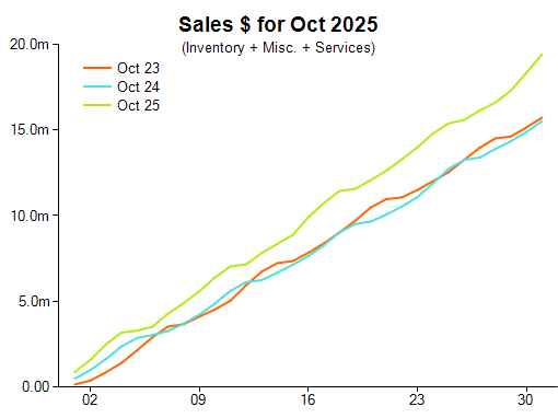 Unit sales improved by 2.9 per cent on a year-on-year comparison, while the average retail sale (inventory only) reached $338, a 24 per cent increase from October 2024. Retail Edge Consultants general manager Leon van Megen said the data revealed a renewed intensity of consumer engagement, highlighted by sustained higher spending levels.