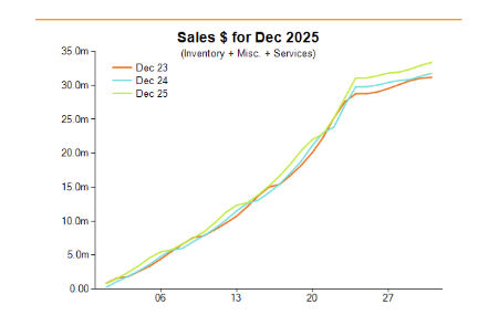 “December delivered a clear revenue uplift, reflecting stronger seasonal demand supported by higher average sale values rather than increased transaction volume,” he explained.
