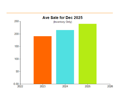 Unit sales decreased by 4.9 per cent on a year-on-year comparison, while the average retail sale (inventory only) increased to $239, a jump of 11 per cent on a year-on-year comparison and a figure 26 per cent higher than what was recorded in 2023.