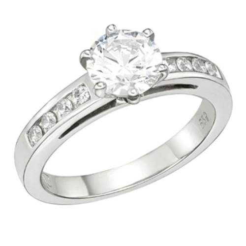 This 9-carat white gold ring features a brilliant cut diamond simulant with eight round brilliant shoulder diamond simulant stones. EverGem’s new spring collection comprises classic and contemporary designs and pieces come with lifetime guarantees on diamond simulant stones.