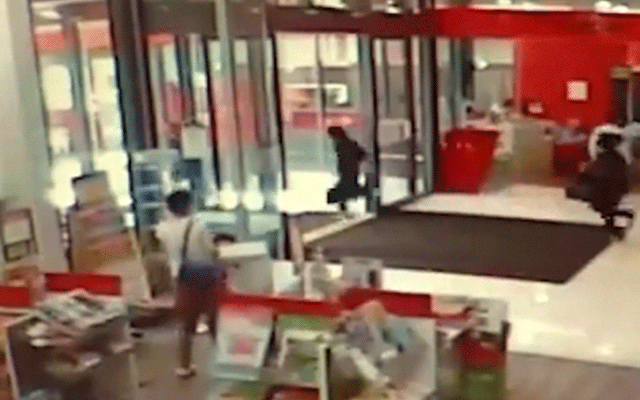 CCTV footage shows the robbers smashing display glass cabinets and filling bags with jewellery before fleeing the shopping centre in an alleged stolen vehicle. The incident took about 20 seconds.