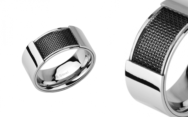 It's available in sizes Q to Z and made of stainless steel with an ion-plated black mesh.