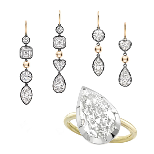 | Zoe Kravitz Jessica McCormack Earrings: 'Multi-Shape Long' earrings, featuring 12.60 carats diamonds set in blackened 18-carat white and yellow gold, and 18-carat yellow gold, from the Signature Collection Ring: 'Tilted Pear Button Back' ring, featuring 4.52 carat diamond set in 18-carat white and yellow gold Valued at: Unknown |  |