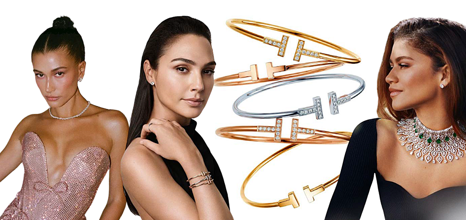 | L to R: Tiffany & Co x Hailey Beiber, Tiffany & Co x Gal Gadot 2023, Bulgari x Zendaya 2023 |