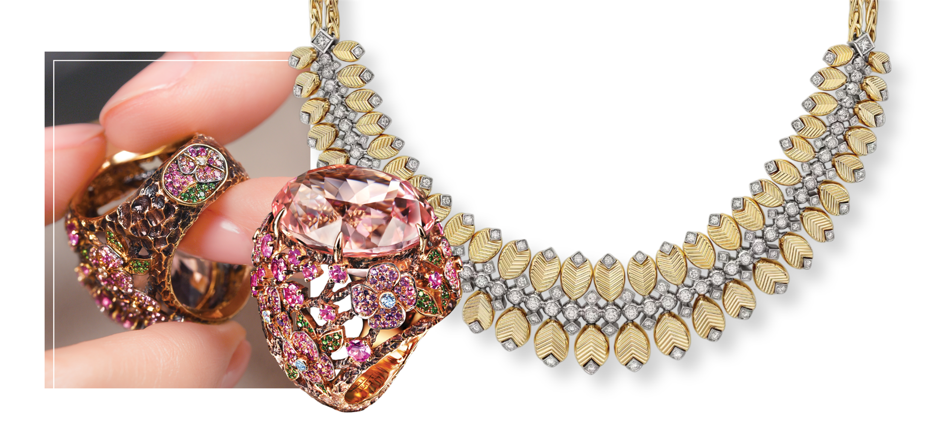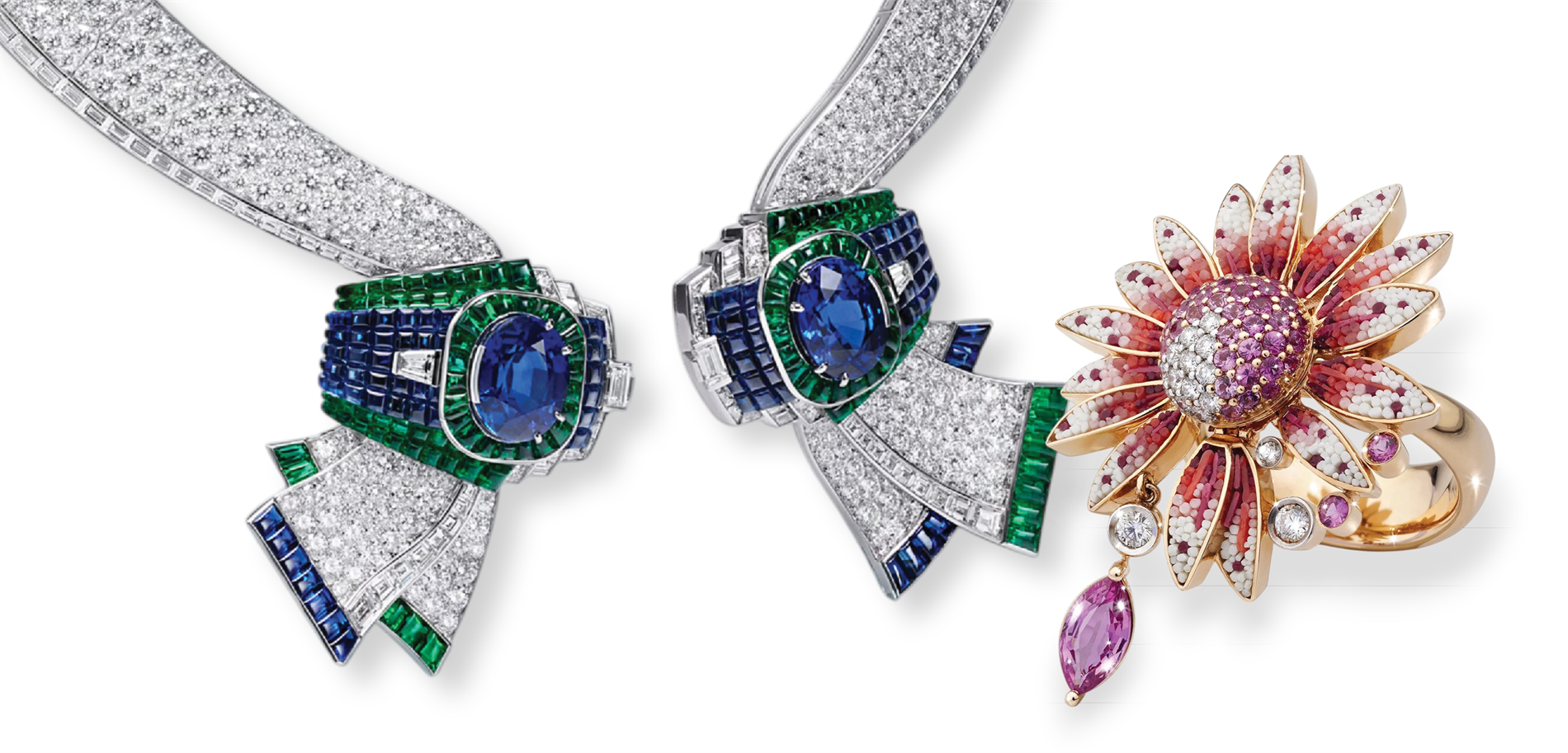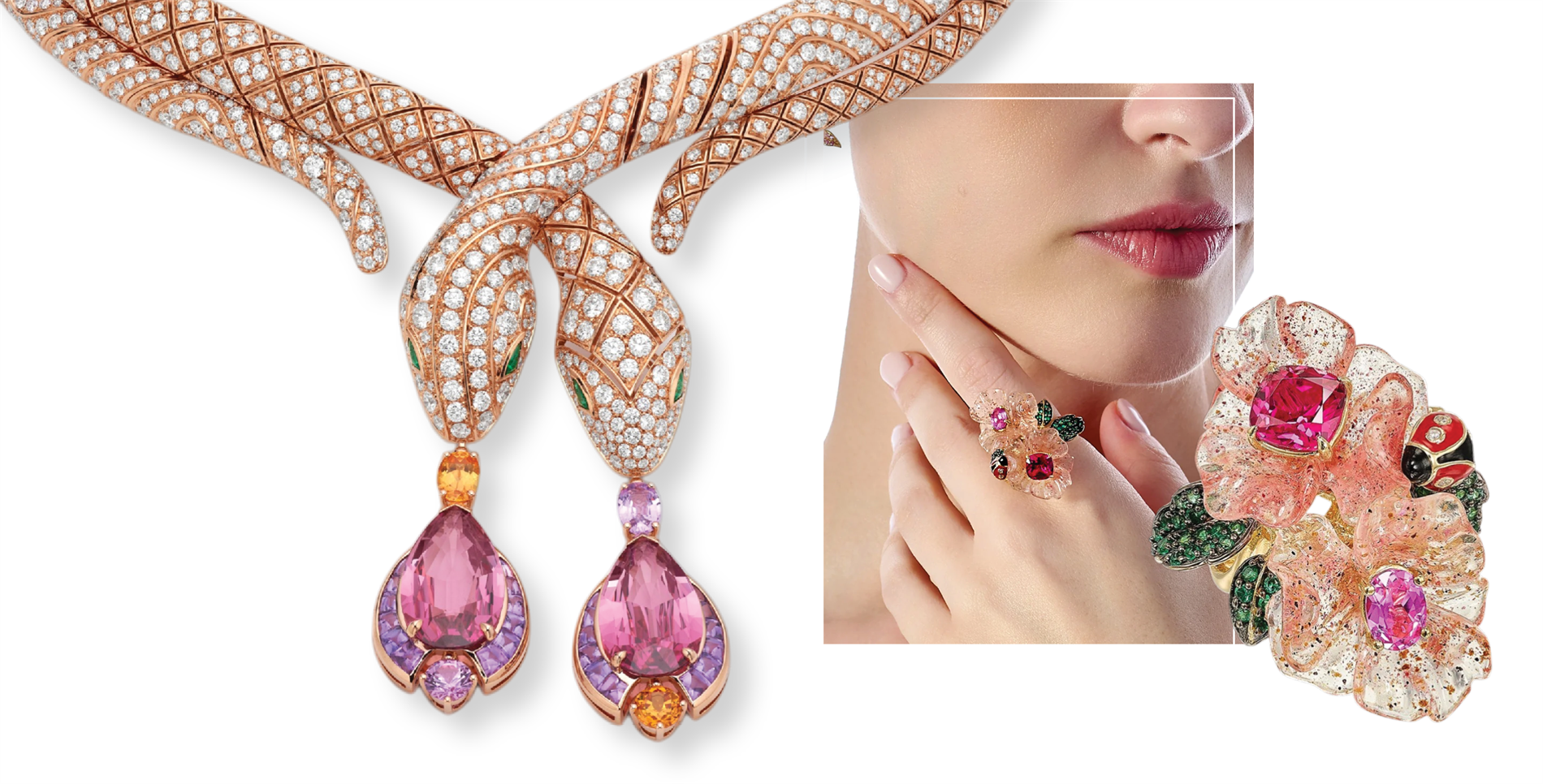 | Invisible Violet Necklace by Bulgari | Beetroot & Dragonfruit Garden Ring by Anabela Chan |