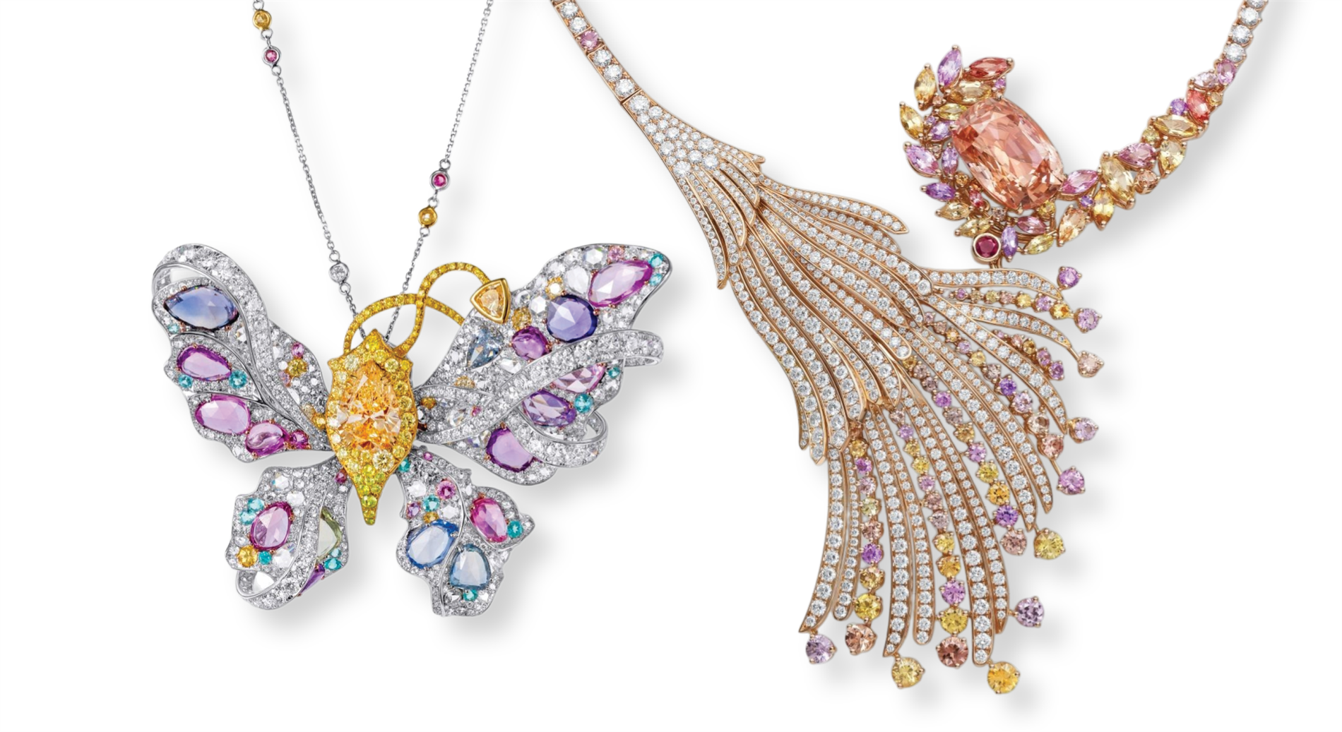 | Monet Butterfly Pendant by Anna Hu | Blushing Wing Necklace by Gübelin |
