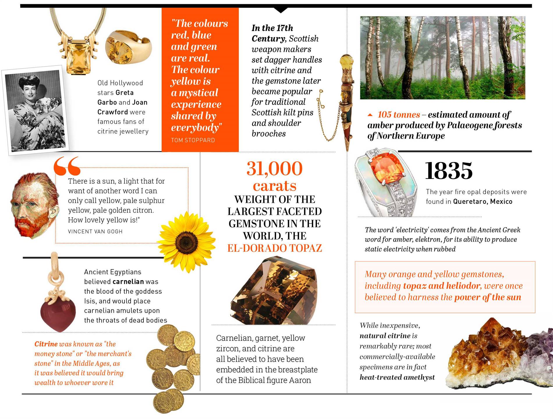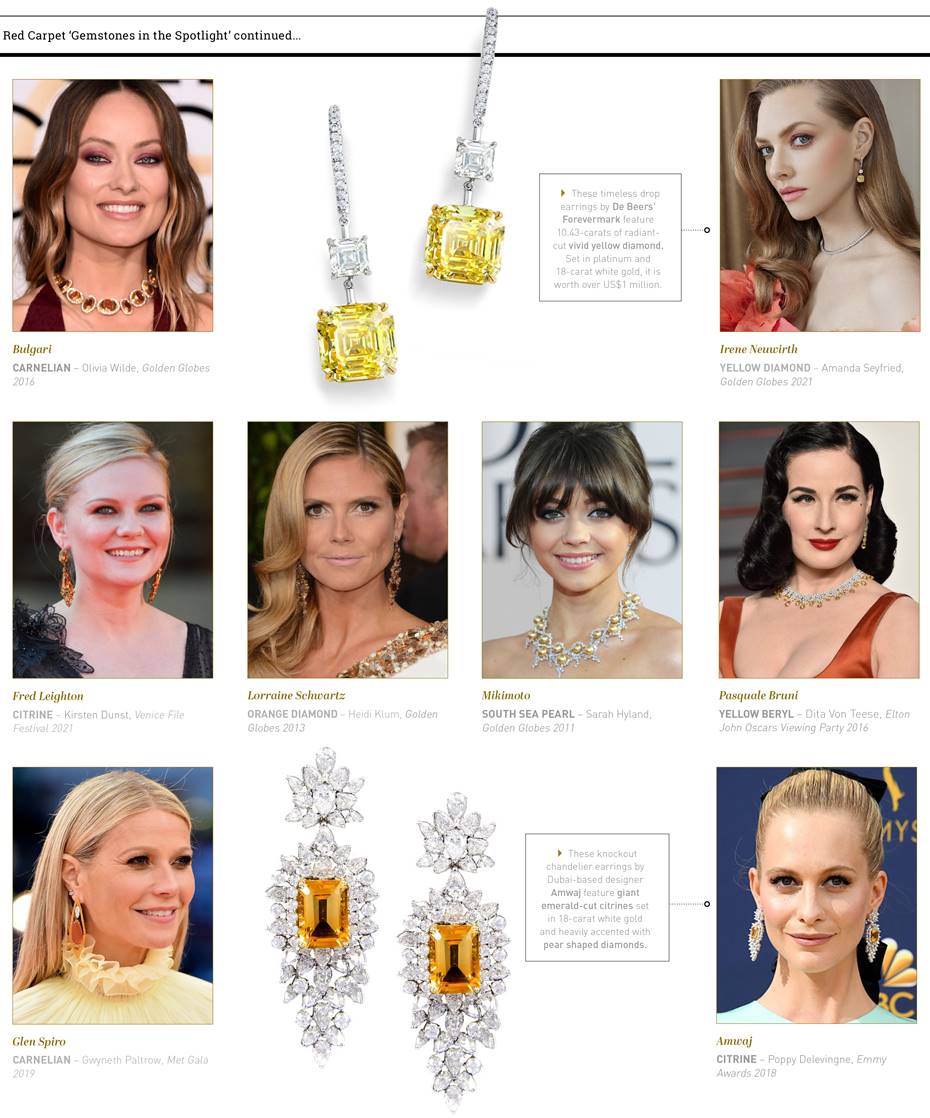 For centuries, orange and yellow gemstones have enraptured jewellers and jewellery-lovers, with mystical properties attributed to their warm, sun-like glow. Inset jewellery: Jewellery Theatre