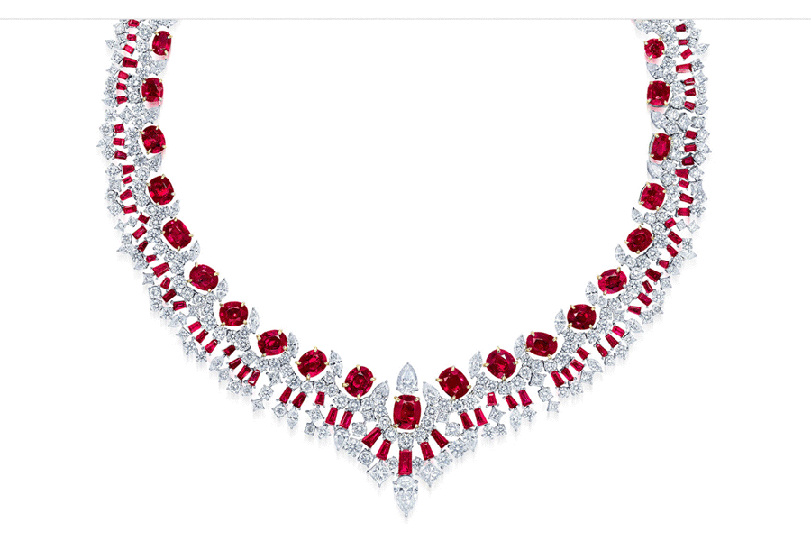 A necklace set with Burmese rubies and white diamonds was the top-performer in Hong Kong. Image Source: Phillips