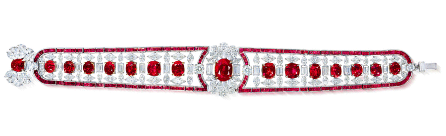 A bracelet featuring 17.08 carats of Burmese rubies and diamonds was sold for $US321,048 ($AU463,550).