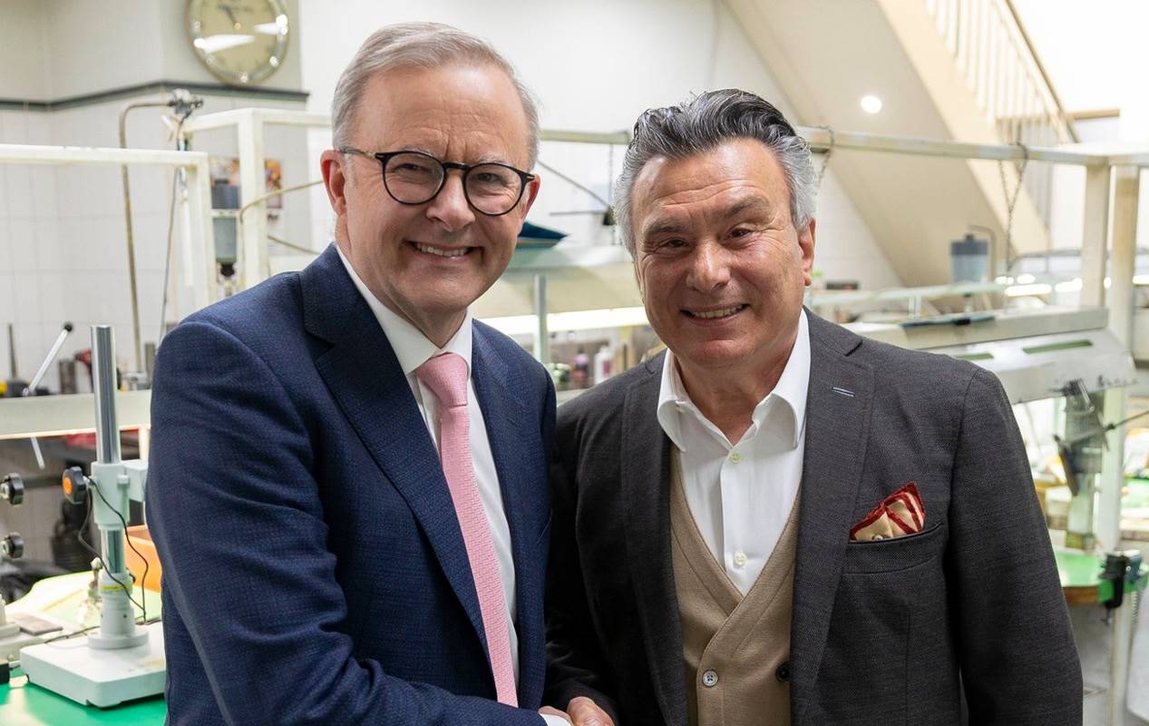 Nicola Cerrone welcomes the Prime Minister Anthony Albanese to the head office and workshops in Leichhardt. | Source: Cerrone