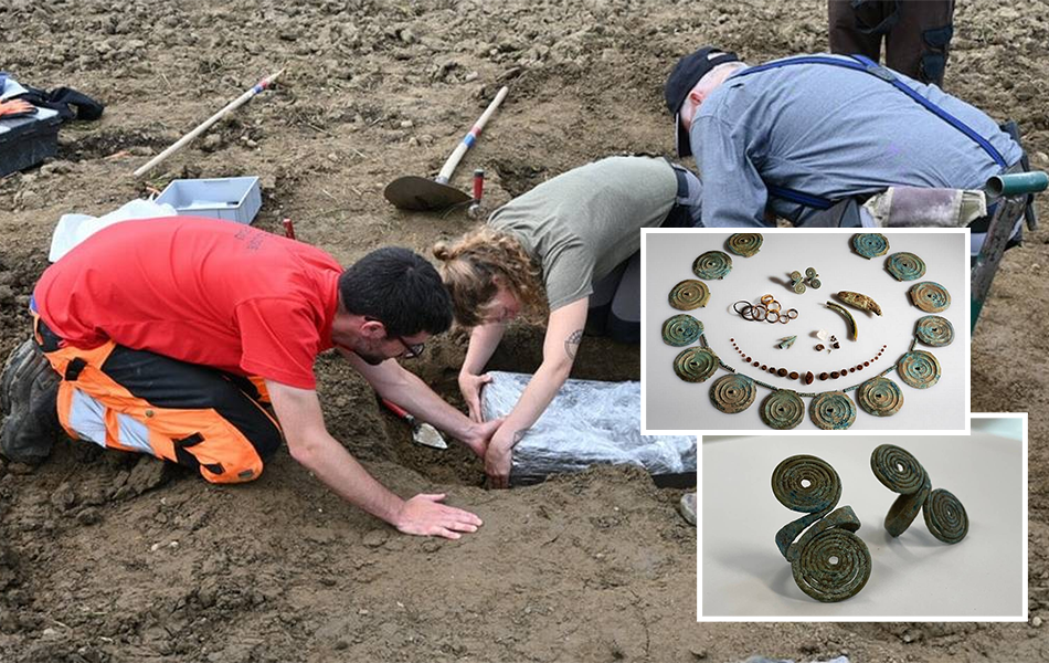 A man with a metal detector examining a carrot field in Switzerland has uncovered an extensive collection of ancient jewellery dating back to the Bronze Age. | Source: Thurgau Canton