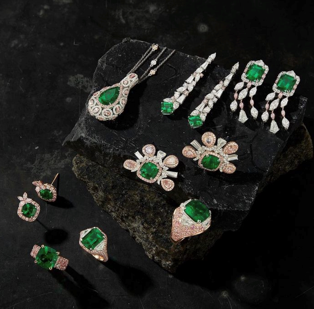 Muzo x Glajz's ‘Green Jewel Tradition Collection’ features 13 exquisite, one-of-a-kind pieces ranging from cocktail rings to brooches.