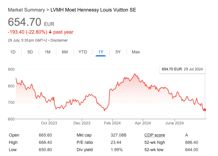 Luxury conglomerate Louis Vuitton Moët Hennessy (LVMH) has reported declining first-half revenue amid ongoing concern about consumer confidence and discretionary spending. | Source: aeworld