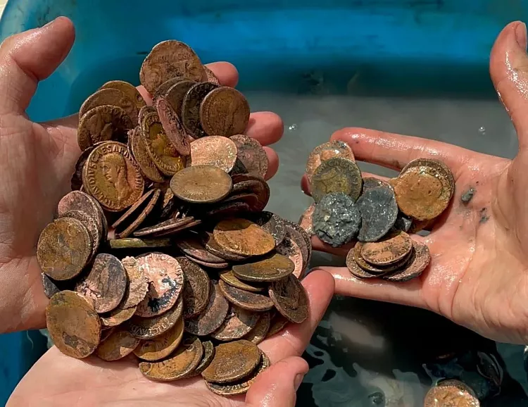 More than 10,000 coins, ranging from the Roman Republic to the Empire, were found in the sanctuary pool.