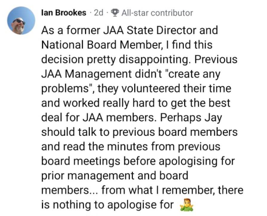 Former JAA board member Ian Brookes took to social media to suggest that the JAA has "nothing to apologise for." This was unusual, as the JAA has, in fact, issued multiple apologies.