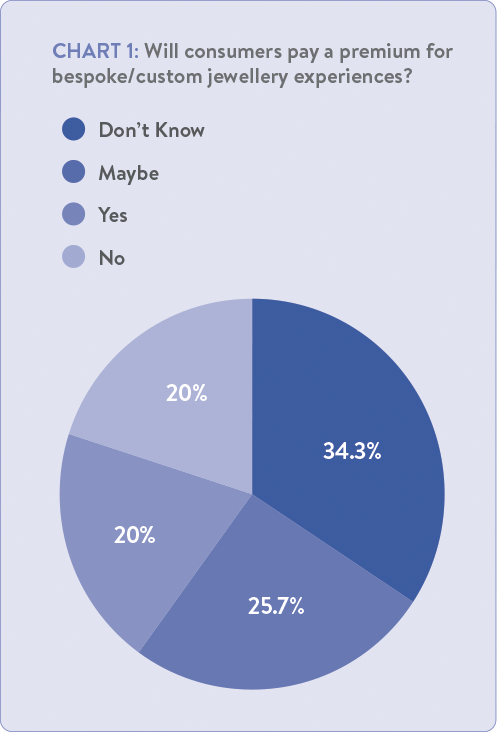 Results of a survey conducted by MVI Marketing LLCwhich showcases the willingness to pay premium prices for custom-made and bespoke jewellery. Research indicatates that modern consumers, particularly those who are younger, prioritise individualisation as part of the shopping experience.