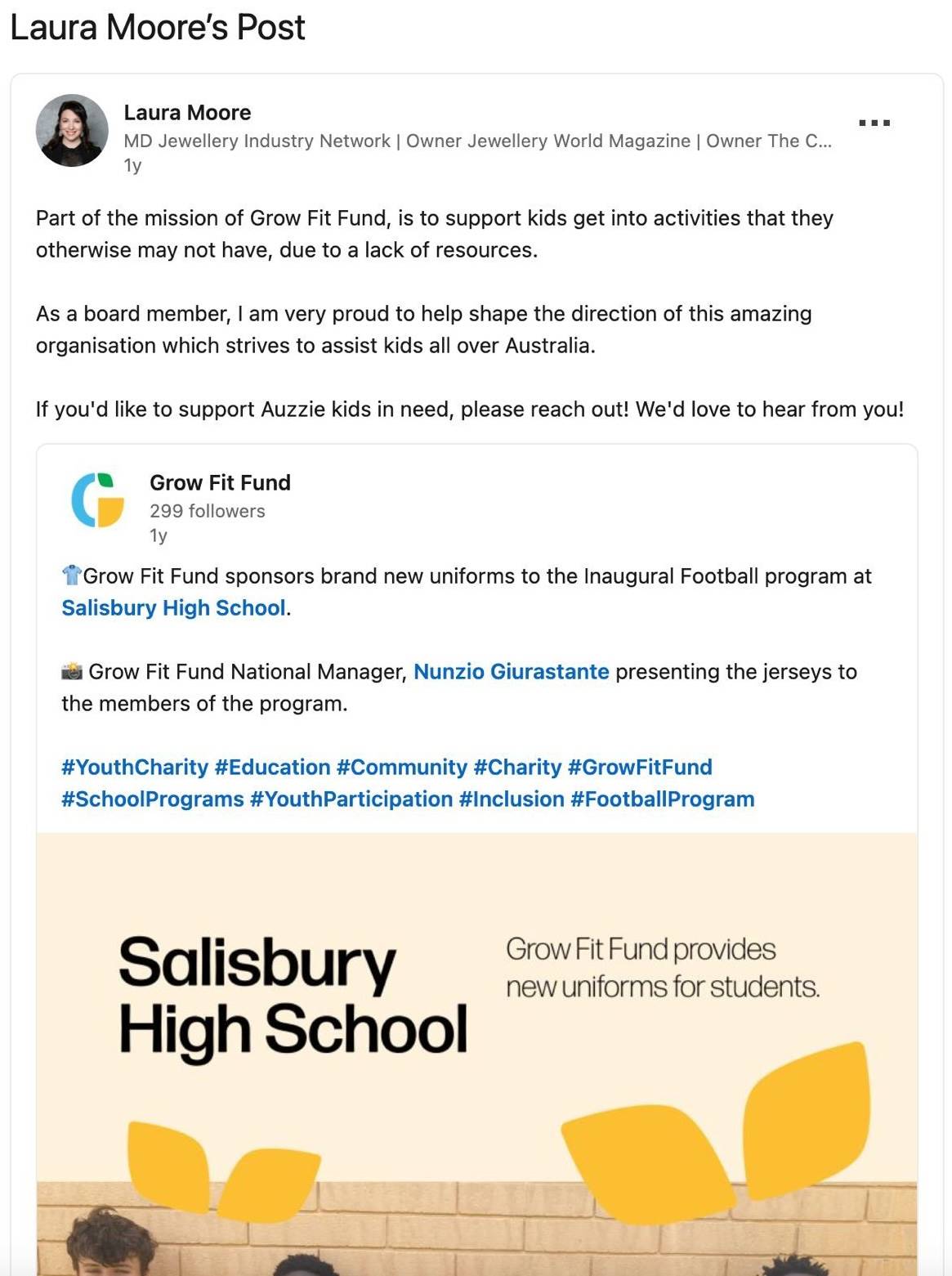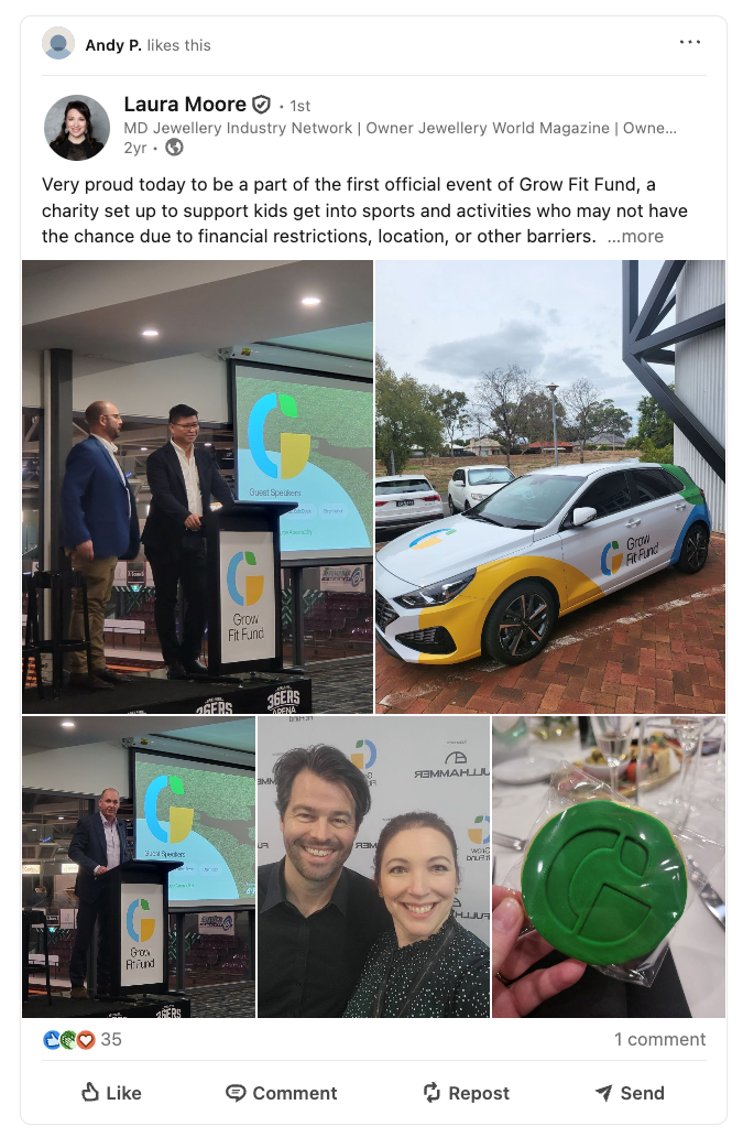 PROUD - Laura Moore’s LinkedIn post not only details her connection to the children’s charity, it also demonstrates the many ways in which her and Phanthapangna's business interests have been intertwined not only with each other, but also with the broader Australian jewellery.