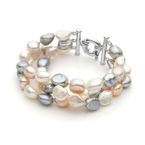 Ikecho Pearl bracelet- white, black and grey Keshi pearls