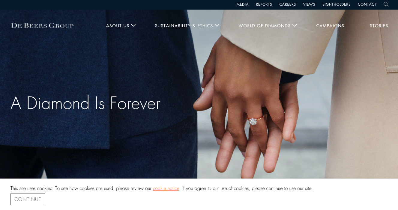 A Diamond is Forever – De Beers' About Us page features their iconic statement.