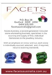 Facets Australia, a 2nd generation coloured stone wholesaling business, specialises in the source and supply of fine, individual gemstones to the jewellery industry. With an emphasis on colour and cut, each stone is individually sourced, selected and, if required, recut to exacting standards.