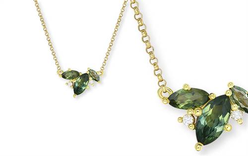 Unique and beautiful, the Numilla necklace showcases an arrangement of marquise-cut Australian sapphires and a single sparkling white diamond.