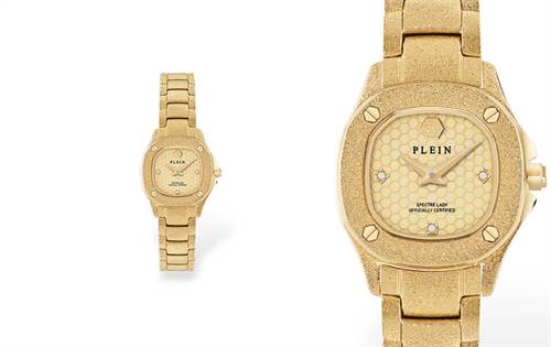The Spectre Lady is pure frozen fantasy. A timepiece sculpted in gold-tone and sealed with style.